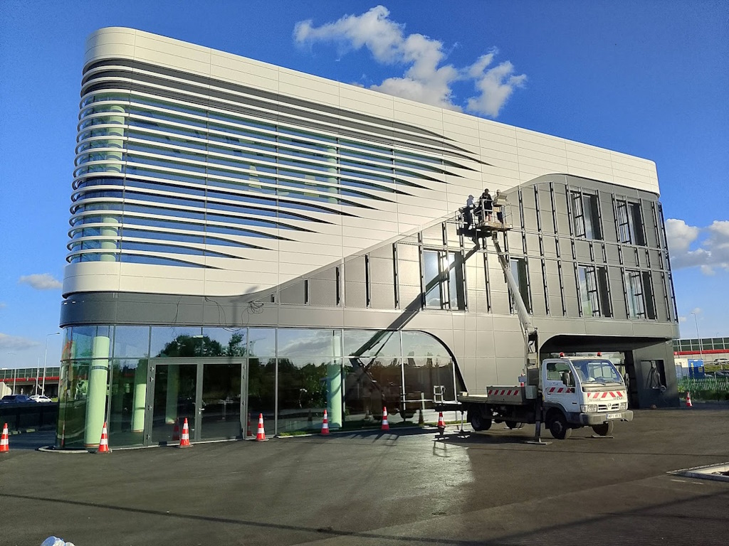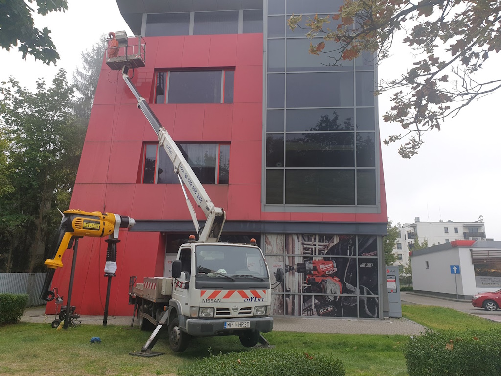 Mycie okien z wykorzystaniem podnośnika koszowego